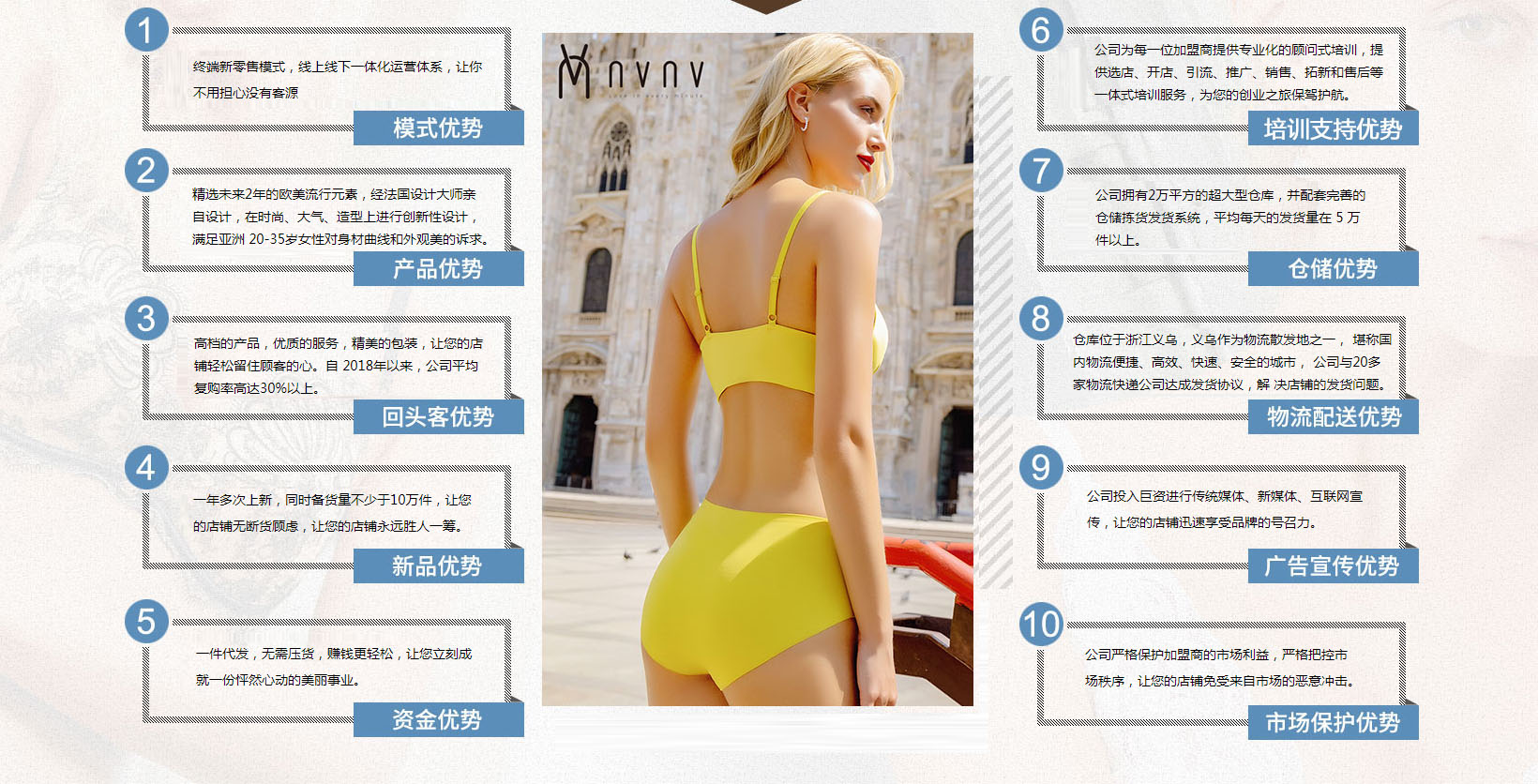 版權所有 nvnv nvnv內衣 nvnv加盟 浙江恩薇健康科技有限公司 中國時(shí)尚品牌網(wǎng) 提供網(wǎng)絡(luò )支持